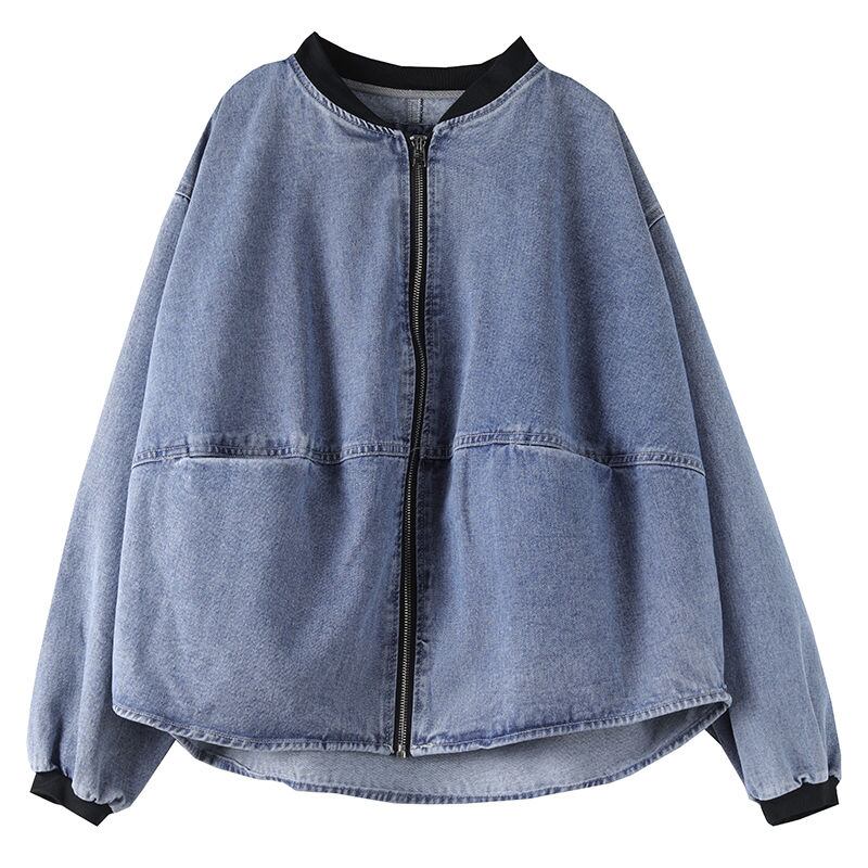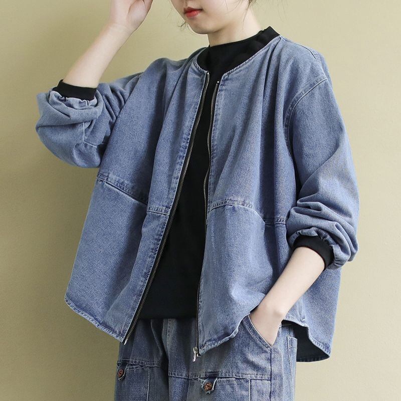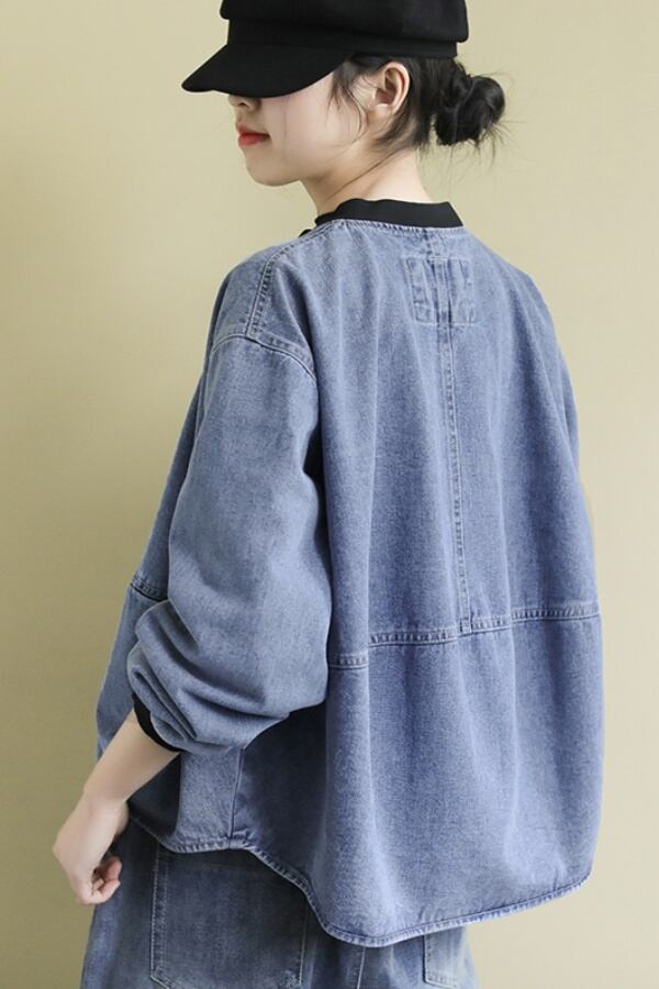 ジージャン Gジャン デニムジャケット ノーカラー 丸首 ストレッチ レディース ジーンズ アウター ノーカラー シンプル 長袖 春アウター ネイビー