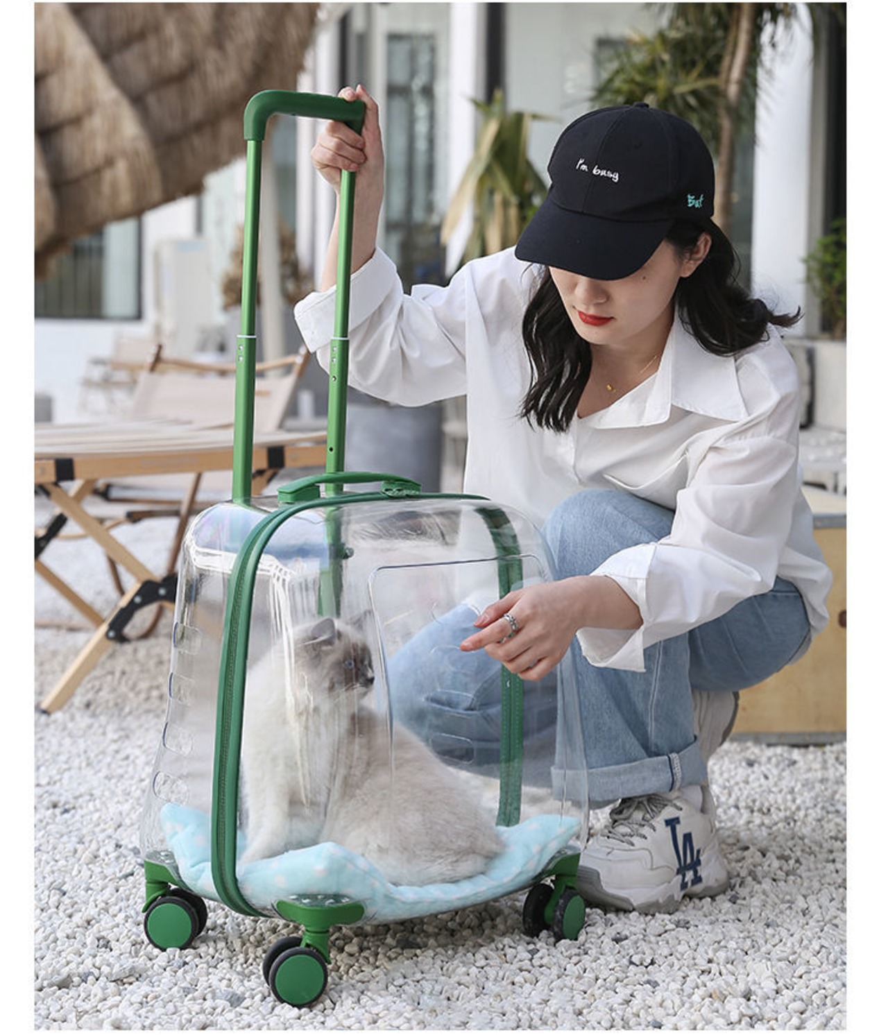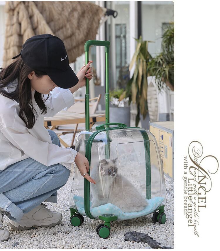 ペット キャリーバッグ 手提げバック ペットハウス ペットキャリーケース キャスター付き 犬 猫 うさぎ おしゃれ 透明 通気性 グリーン ピンク