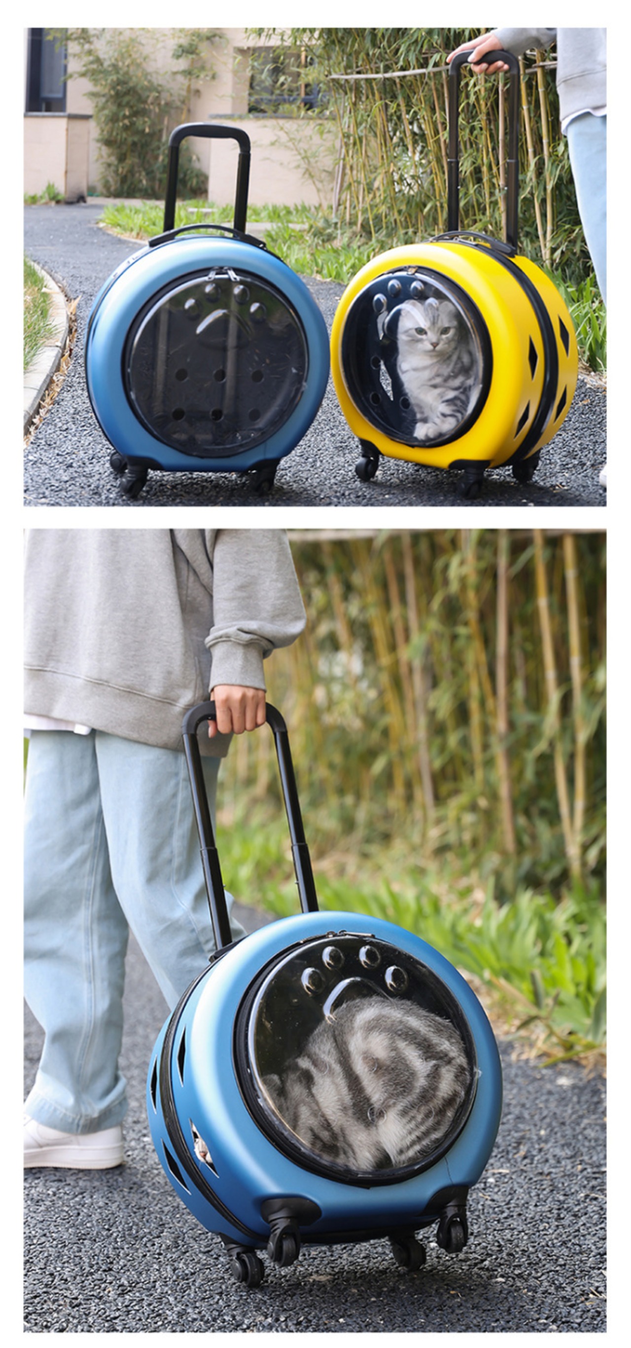 ペット キャリーバッグ 手提げバック ペットハウス ペットキャリーケース キャスター付き 犬 猫 うさぎ おしゃれ 透明 通気性 ブラック ホワイト
