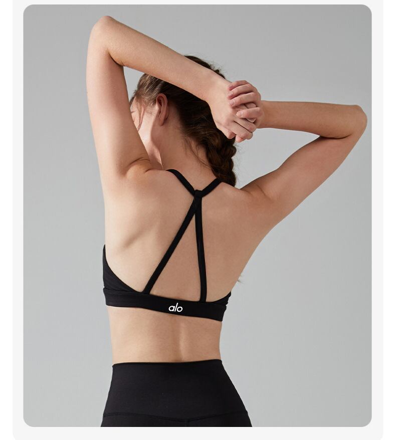 Alo Yoga アロヨガ ライトサポート スポーツブラ 揺れない クロスバック サポートブラ ヨガウェア 美胸 サポート力抜群 サポートブラ ヨガ ランニング ジョギング ダンス ブラウン ブラック