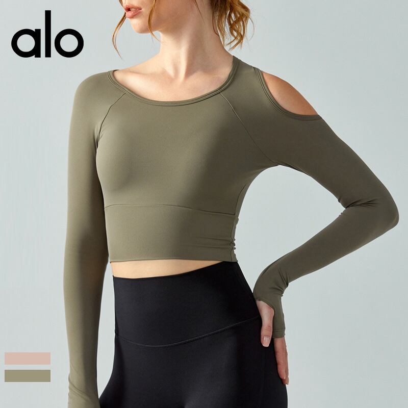 Alo Yoga アロヨガ 長袖 リブ トップス パーカー レディース スウェット ランニング トレンドデザイン フィットネス トレーニング 春夏 ヨガ ピンク グリーン