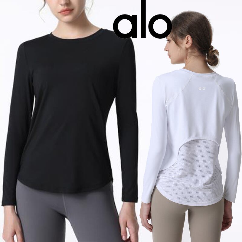 Alo Yoga アロヨガ 長袖 リブ トップス パーカー レディース スウェット ランニング トレンドデザイン フィットネス トレーニング 春夏 ヨガ ホワイト ブラック