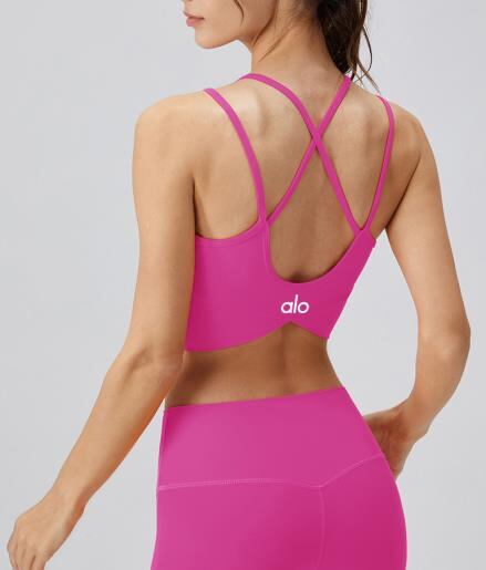 Alo Yoga アロヨガ ライトサポート スポーツブラ 揺れない クロスバック サポートブラ ヨガウェア 美胸 グリーン ピンク