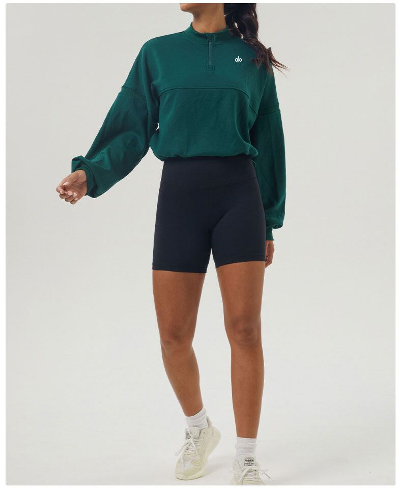 Alo Yoga アロヨガ パーカー レディース ハーフジップ スウェット ランニング トレンドデザイン カジュアルウェア リラックスフィット 春秋 グリーン ピング