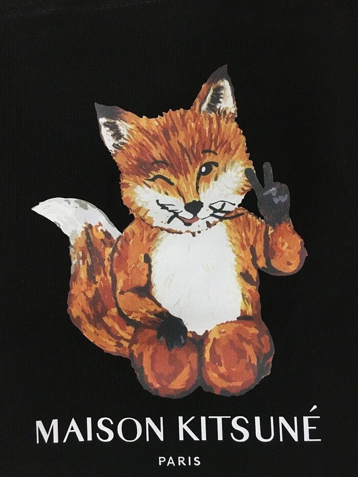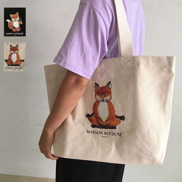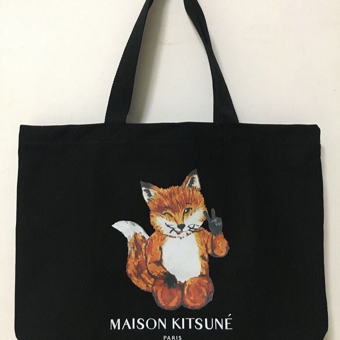 MAISON KITSUNE メゾンキツネ トートバッグ 狐のデザイン おしゃれな バッグ カジュアル 旅行 通勤 日常使い 可愛い ホワイト ブラック