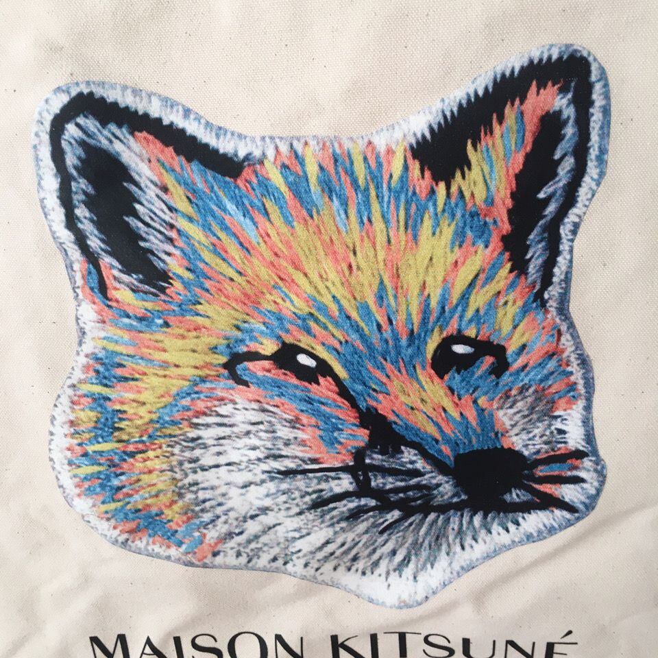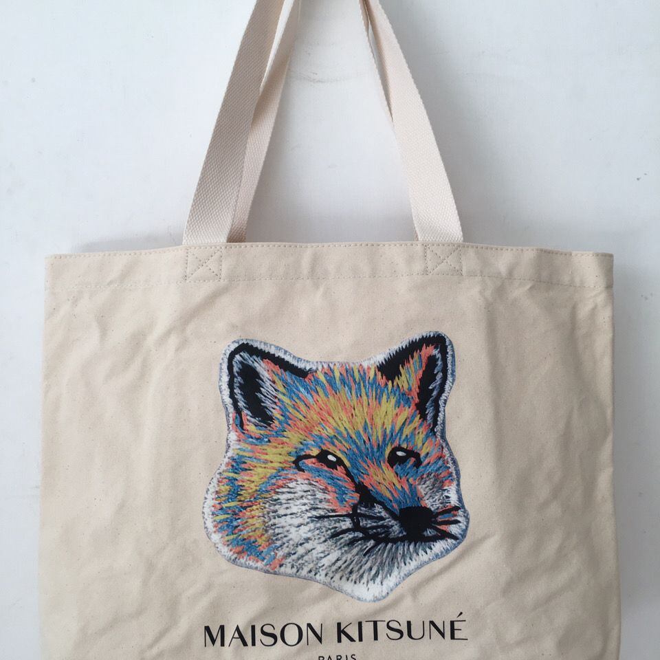 MAISON KITSUNE メゾンキツネ トートバッグ 狐のイラスト 大容量 おしゃれ バッグ カジュアル デイリー ショッピング 旅行 人気 ホワイト 個性派