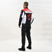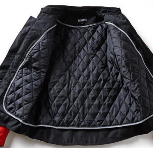 このジャケットは、耐久性と快適性を兼ね備えた高品質な素材で作られています。特にバイクライディングに適したデザインが施されています。