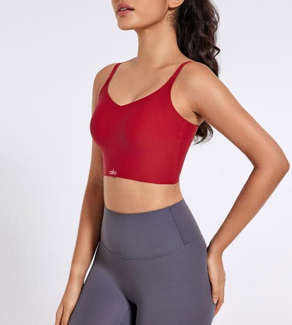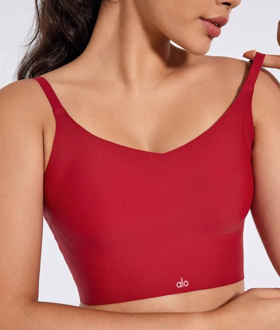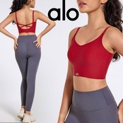 Alo Yoga アロヨガ タンクトップ レディース カップ付き LOGO ノースリーブ ロゴ ワンポイント 無地 レッド