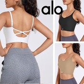 Alo Yoga アロヨガ タンクトップ レディース カップ付き LOGO ノースリーブ ロゴ ワンポイント 無地 ホワイト ブラック カーキ 3色