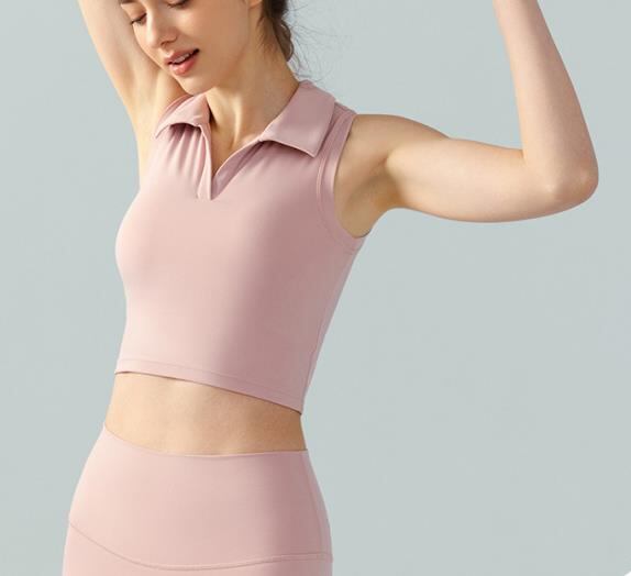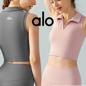 Alo Yoga アロヨガ スポーツブラ ポロシャツ スポーツウェア アクティブフィット カジュアル スタイリッシュ フィットネス トレーニング グレー ピンク
