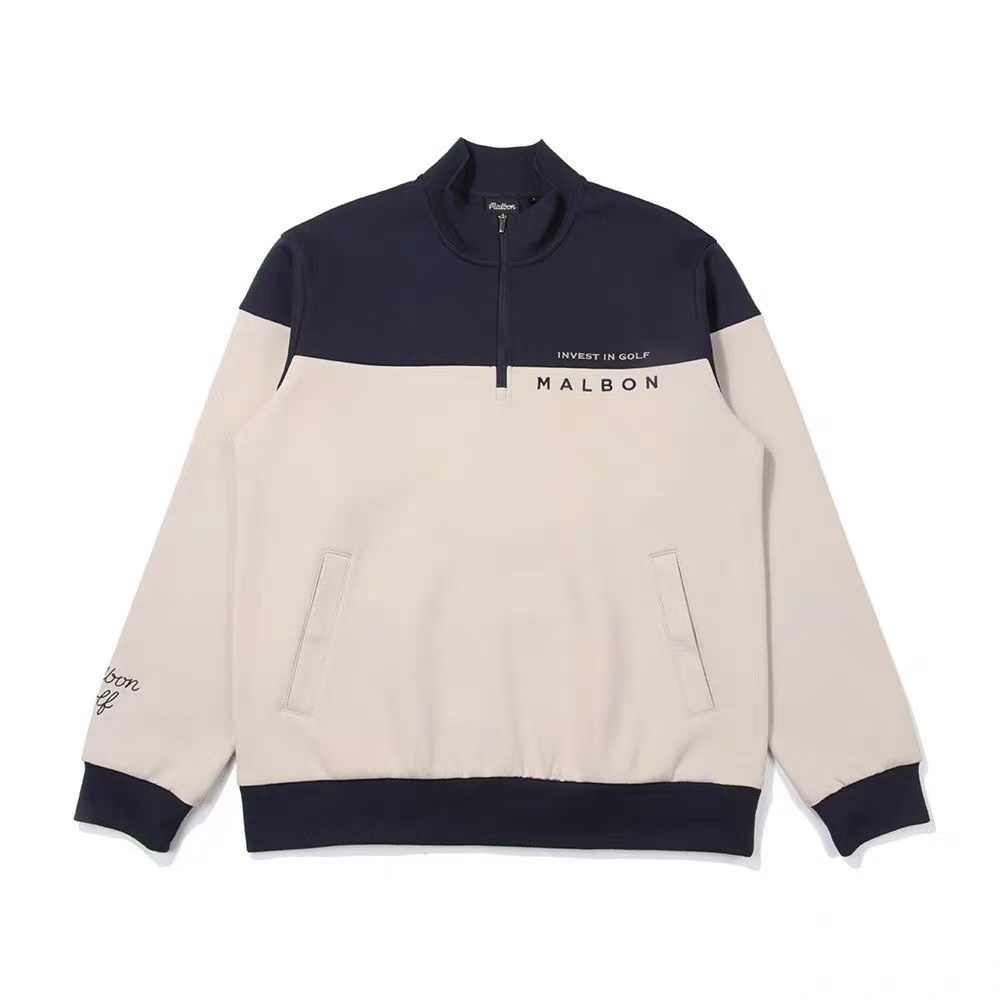 Malbon Golf マルボンゴルフ ハーフジップブルゾン メンズ トップス ゴルフジャケット カーキ グリーン ネイビー シンプル カジュアル