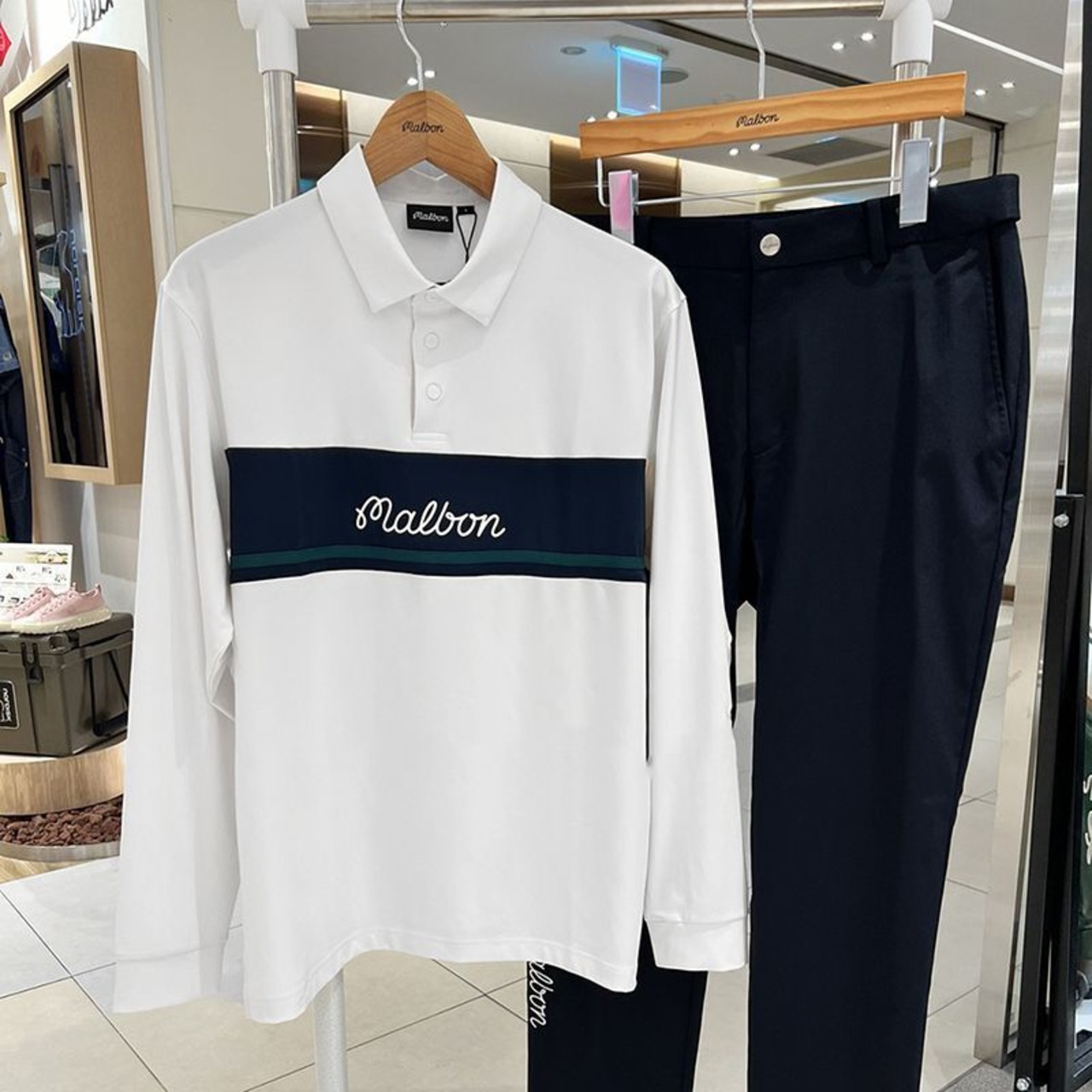 MALBON GOLF マルボン ポロシャツ 長袖 カジュアル ゴルフウェア 吸汗速乾 春秋スタイル ホワイト ネイビー 2色