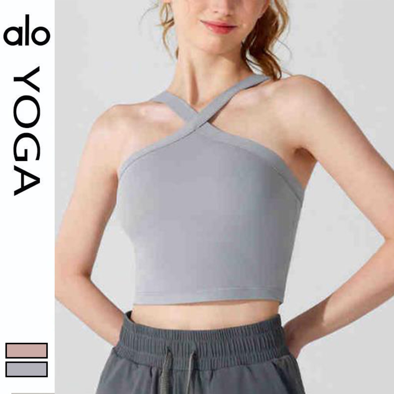 Alo Yoga アロヨガ トップス ブラトップ スポーツブラ タンクトップ キャミ ハーフ レディース ホット ヨガ グレー ピンク