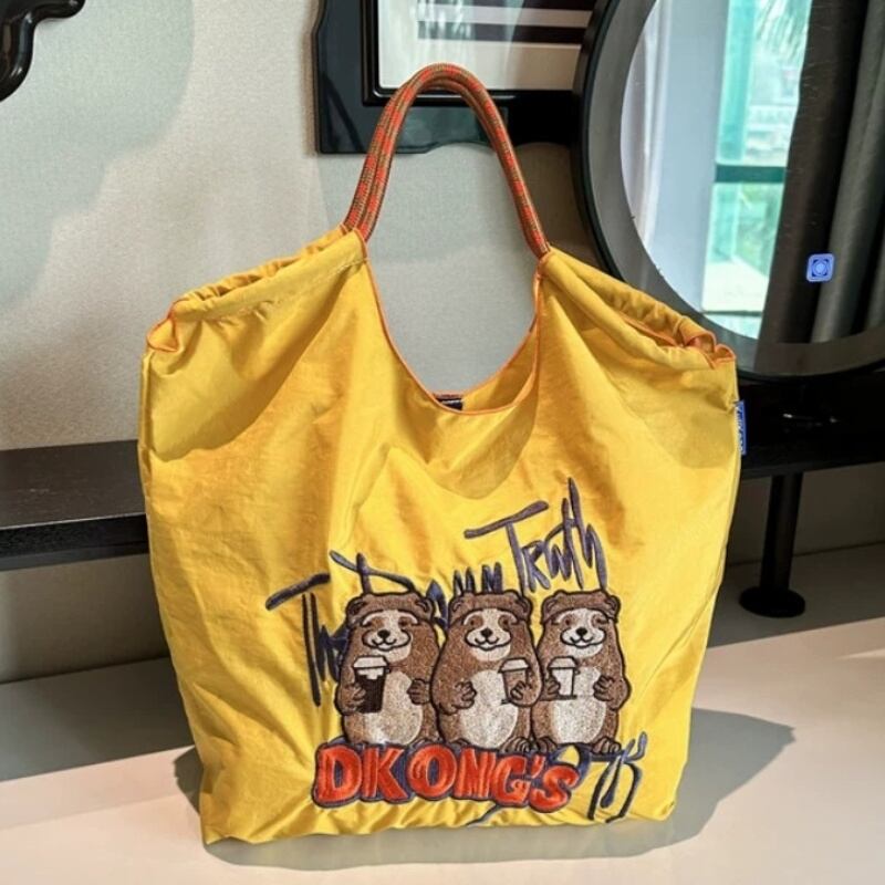大人気 Ball Chain ボールアンドチェーン エコバッグ トートバッグ ショッピングバッグ 大容量 小さな怪物の刺繍 Lサイズ イエロー グリーン ショルダーストラップなし
