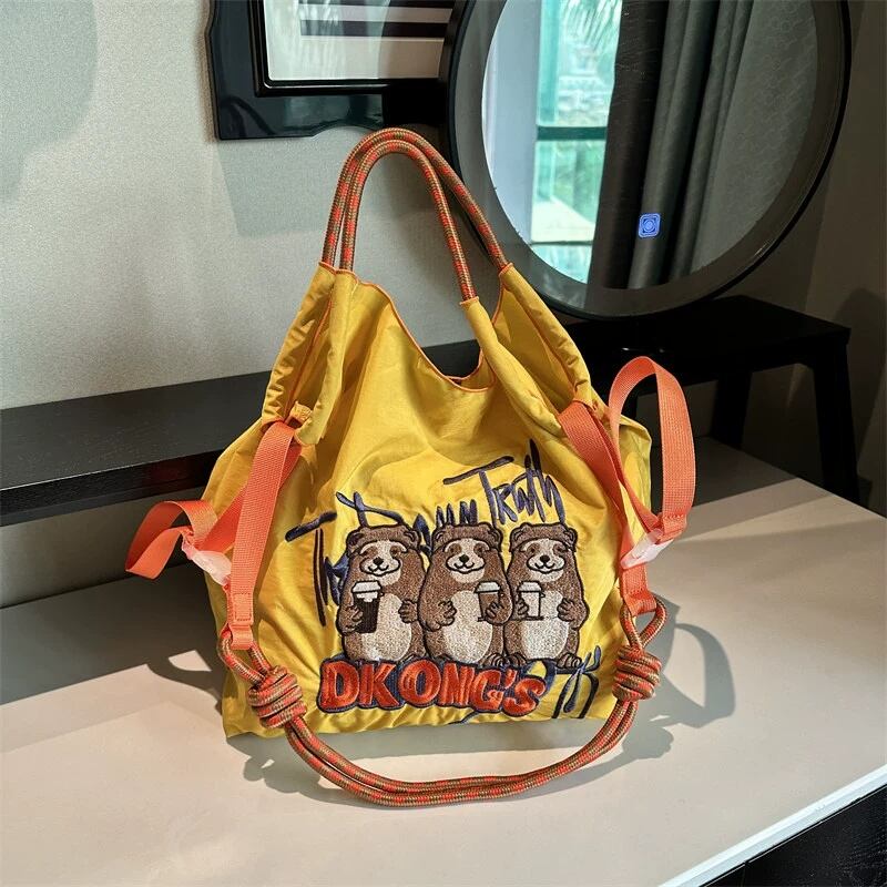 大人気 Ball Chain ボールアンドチェーン エコバッグ トートバッグ ショッピングバッグ ショルダーストラップ付き 大容量 犬の刺繍 Mサイズ イエロー