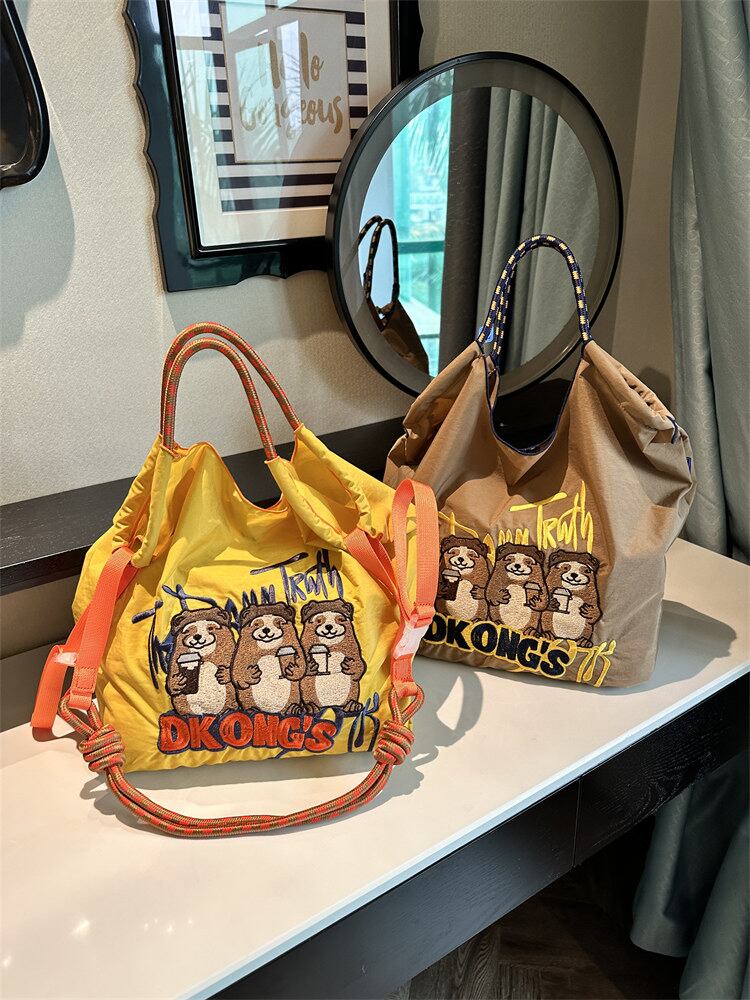大人気 Ball Chain ボールアンドチェーン エコバッグ トートバッグ ショッピングバッグ ショルダーストラップ付き 大容量 犬の刺繍 Lサイズ イエロー
