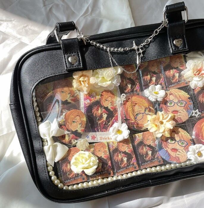 新品 痛バッグ 痛バ ショルダーバッグ ハンドバッグ カバン かばん 缶バッジ カジュアル かわいい おしゃれ 透明バッグ 御宅 ヲタ オタク活 推し活 バッグ ブラック ホワイト