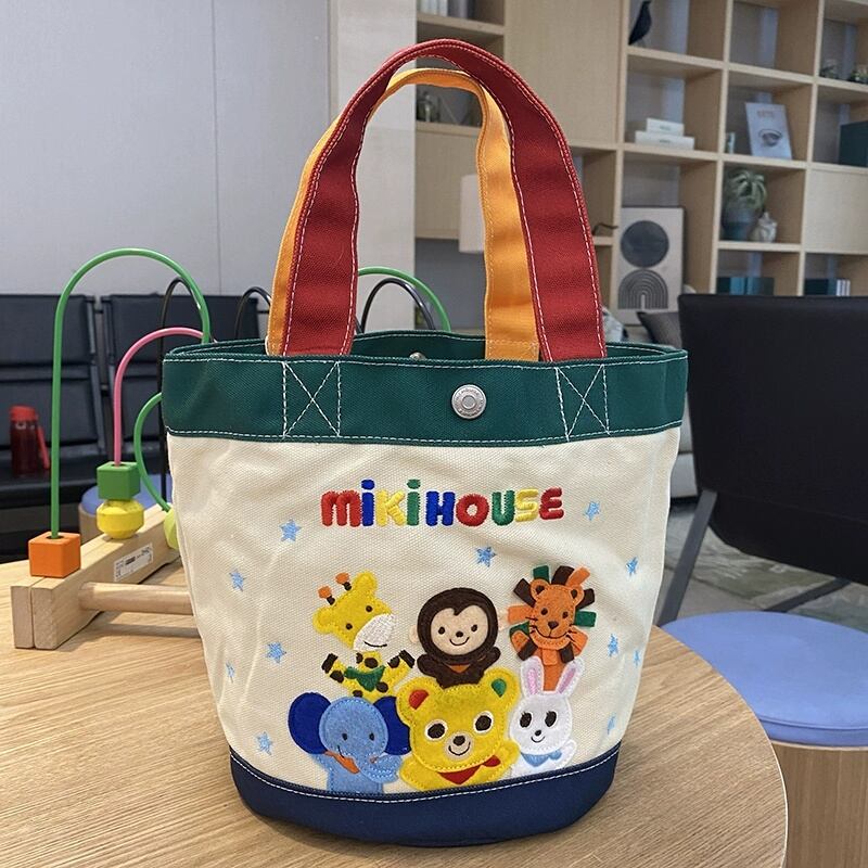 新品未使用 MIKI HOUSE ミキハウス 子ども用お弁当袋 ランチバッグ キッズ弁当袋 おしゃれ かわいい 刺繍デザイン ベビーママバッグ 手提げ弁当手提げ袋お 動物園