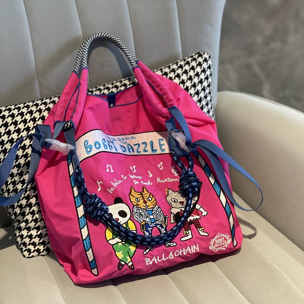 人気商品 Ball Chain ボールアンドチェーン エコバッグ トートバッグ ショッピングバッグ ショルダーストラップ付き 大容量 パンダの刺繍 Mサイズ レッド
