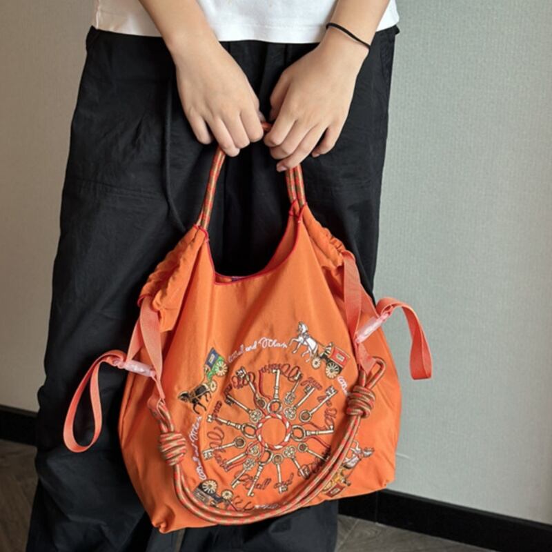 人気商品 Ball Chain ボールアンドチェーン エコバッグ トートバッグ ショッピングバッグ ショルダーストラップ付き 大容量 馬車の刺繍 Lサイズ オレンジ