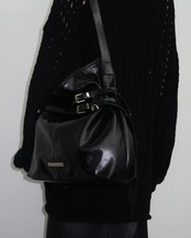 両サイドのシャーリングとリボンがポイントのラウンドバッグでどんなスタイルにも合わせやすい人気商品です