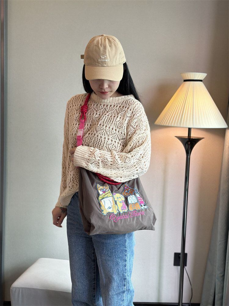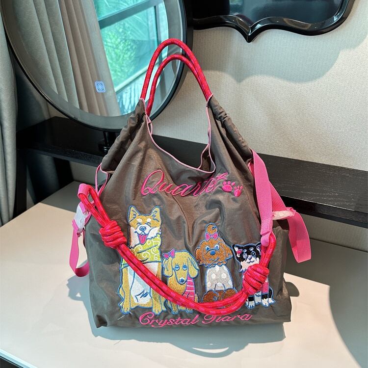 新品 Ball Chain ボールアンドチェーン エコバッグ トートバッグ ショッピングバッグ ショルダーストラップ付き 大容量 犬の刺繍 Lサイズ グレー
