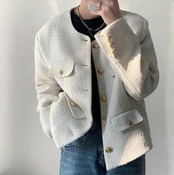 【週末限定価格】 メンズ ツイード ジャケット ラグジュアリー ノーカラー パーティ スタイリッシュ 大人気 春秋冬活躍