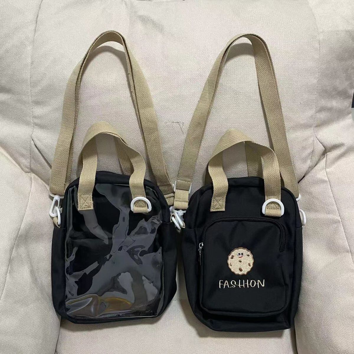 痛バッグ 新しい 透明な和痛バッグ ショルダーバッグ 20センチ メートルショルダー 小さな正方形 痛バッグ カジュアル キュートクロスボディ痛バッグ 笑顔刺繍 ブラック ホワイト