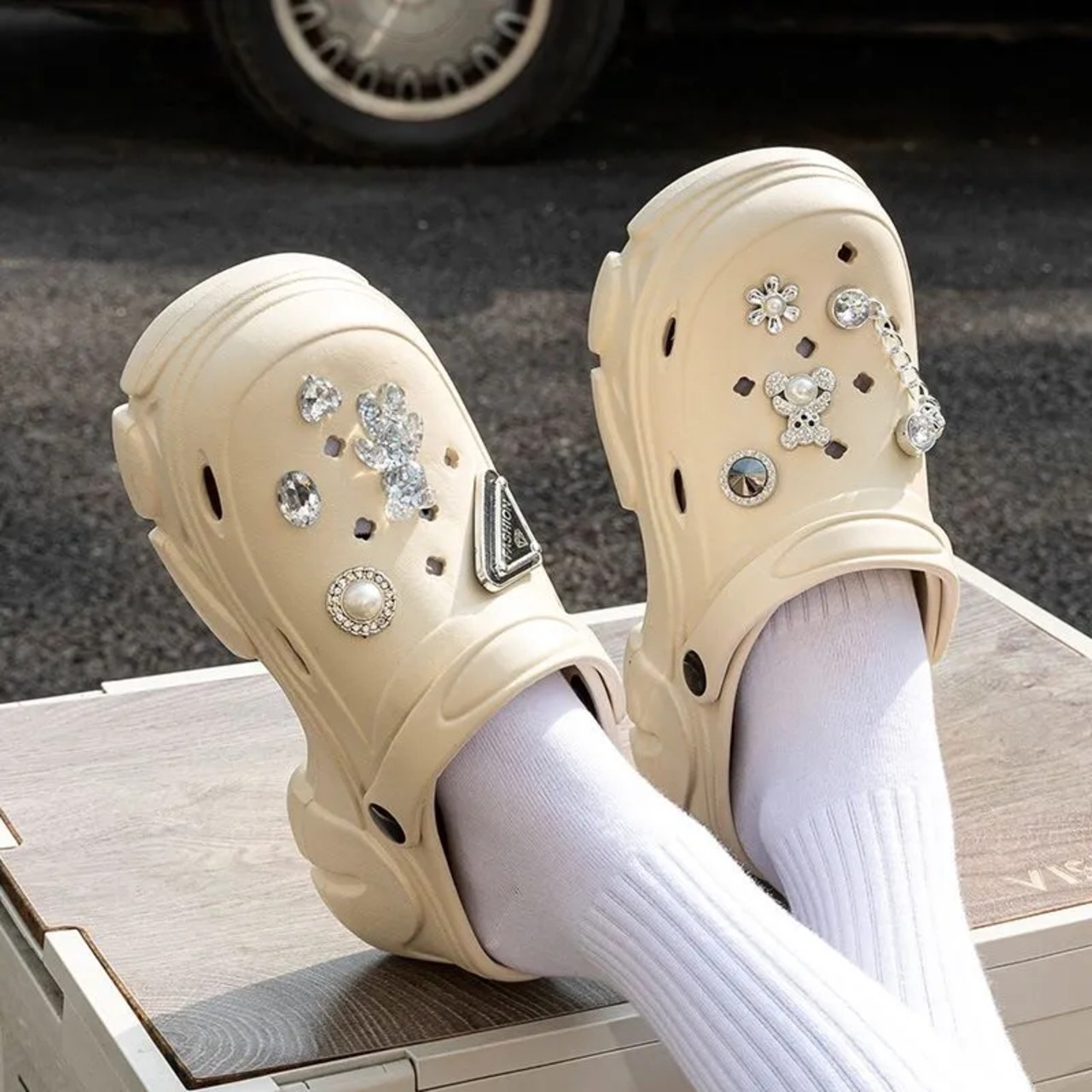 サンダル 夏 レディース クロックス サンダル 漫画のアクセサリー かわいい 7cm厚底 ファッションサンダル 大人気 3色