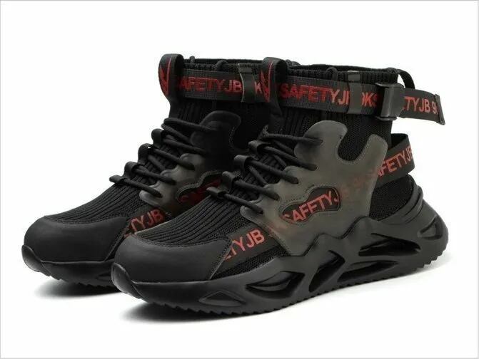 【通気性抜群】安全ブーツの上部はストレッチ性のあるメッシュ素材を使用していますので通気 性が抜群です。それに空気循環する特殊構造で、靴内の足ムレを軽減し快適です。履き心がいい です。