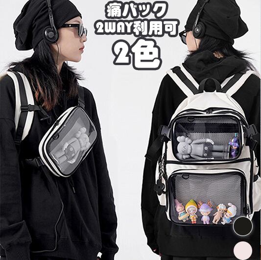 【着脱式/2WAY利用可】 痛バッグ 痛バ リュック 痛バック 痛リュック 大容量 大きめ リュックサック 透明 オタク オタ活 推し活 ホワイト ブラック 2色 ショルダーバッグ