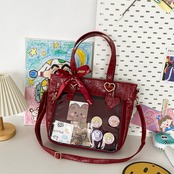 痛バッグ クロコ 2WAY かわいい A4トートバッグ ハンドバッグ ショルダー ショルダーバッグ トート 可愛い おしゃれ 上品 大容量 クロコ柄 5色ブラック ホワイト レッド ブルー ベージュ