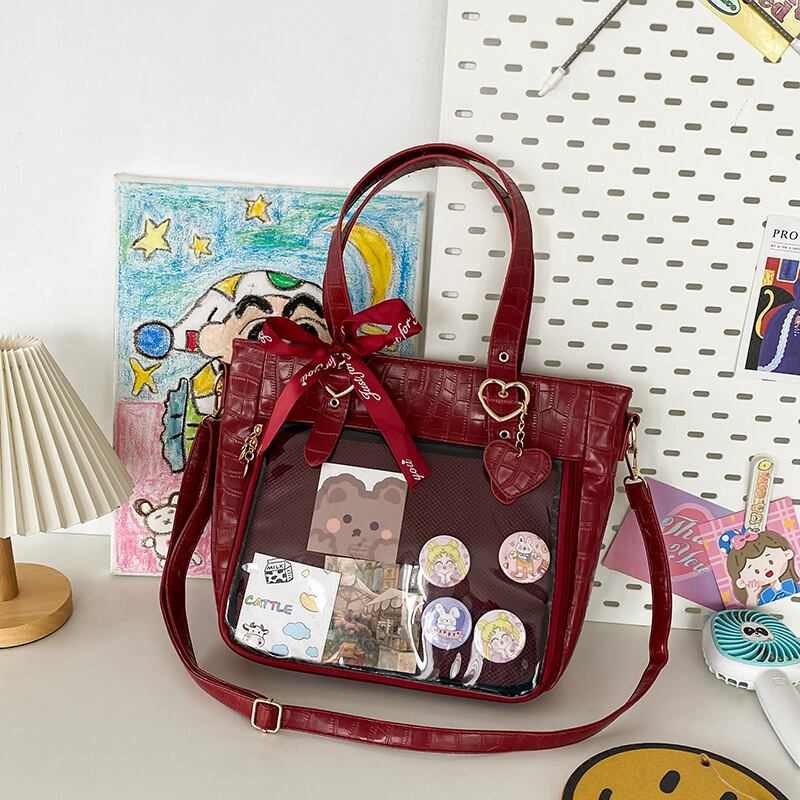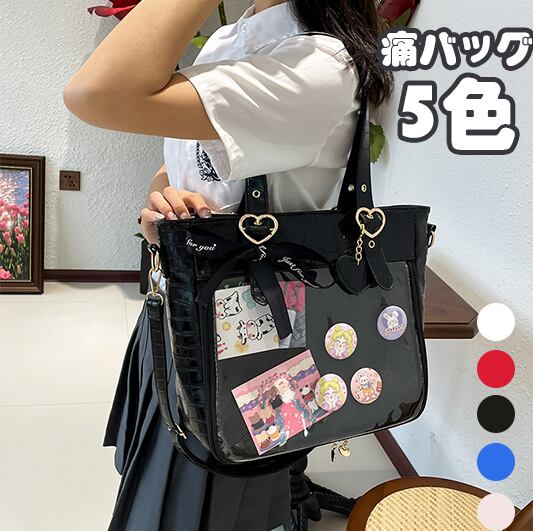 ◎ クロコ柄のデザインがおしゃれで可愛い痛バッグ です。 トート・ショルダーの2WAYで利用できて使い勝手も抜群◎ いずれも着脱可能です。