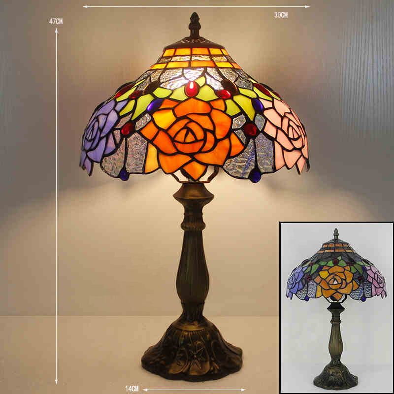 大人気ステンドグラス ランプ スタンド フラワーズ 三色のバラ模様 ライリー LED球使用 喫茶店 グラスランプ ガラス照明 贈り物 ステンドランプ テーブルランプ ランプシェード ステンドグラス