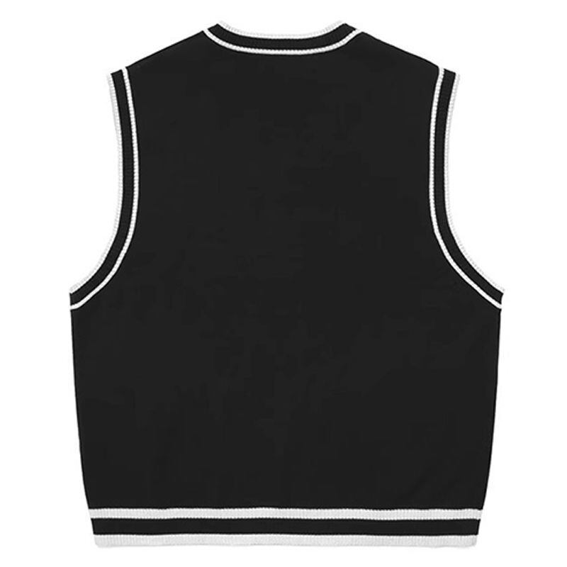 ベストは象徴的なVネックデザインを持っており、このスタイルは20世紀初頭のスポーツウェアとキャンパス服装から発祥しました。
