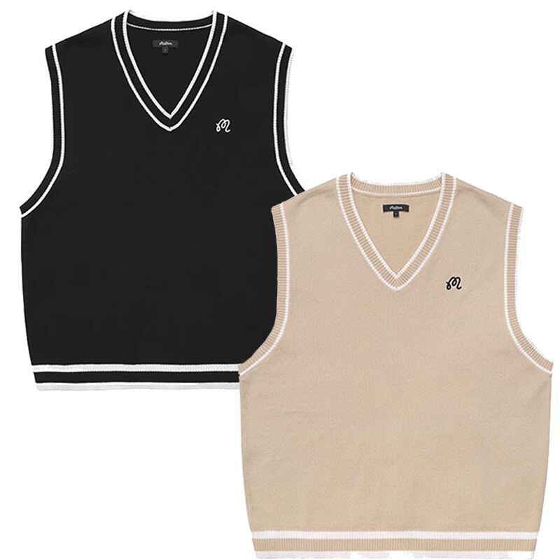 Malbon golf マルボン ゴルフ ニットベスト プレッピースタイル Vネック 韓国風 メンズ カジュアル スポーツ ゆったり ブラック カーキ 2色
