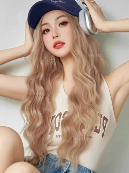 帽子 ウイッグ ロング 上質人工毛 ストリートファッション フルウィッグ ロング カール 小顔効果 コスプレ ゴールド