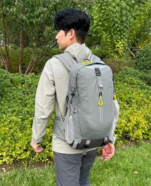 35L 大容量 バックパック 登山 ディバッグ 反射テープ付き リュックサック 防水 軽量 スポーツ 旅行 アウトドア 鞄 防災 男女兼用 おしゃれ グレー イエロー 2色