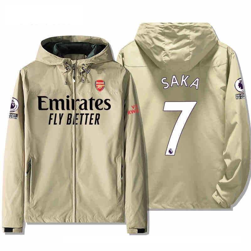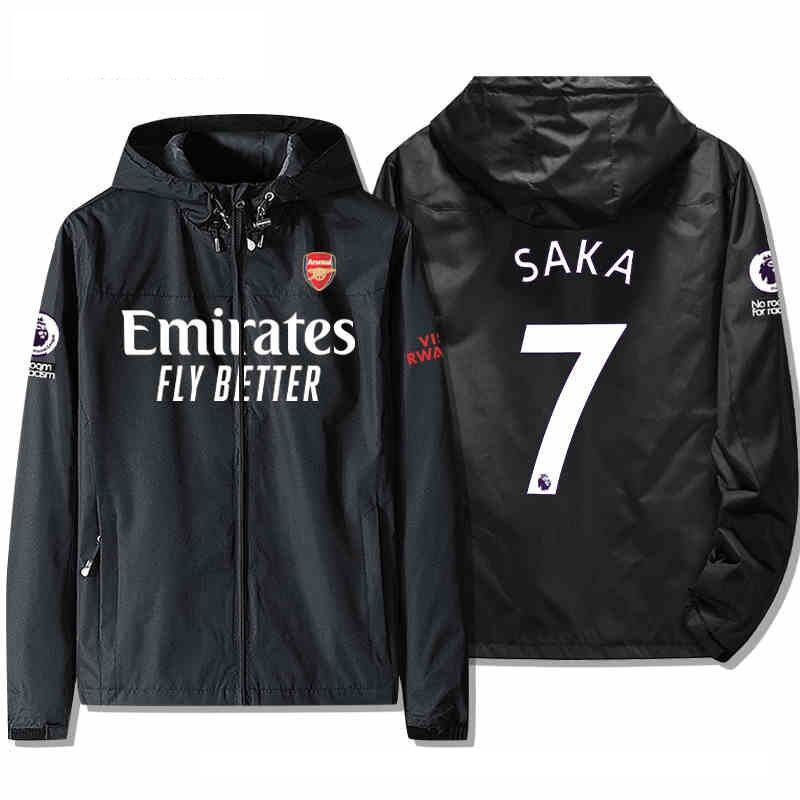 アーセナルFC ジャケット スレーシング SAKA 7番 ファン用ジャケット 冬服 バイクウエアグッズ 防風 長袖ジャケット アウトドアスポーツウェア 釣り服 ブラック ホワイト ネイビー カーキ レッド 5色