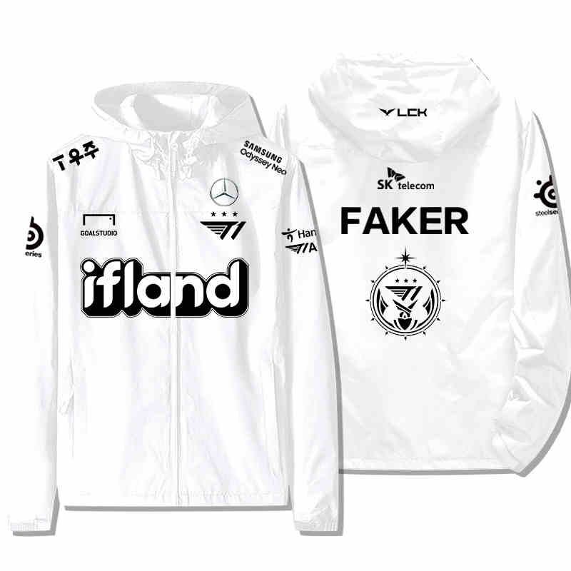 IFLAND ロゴ ジャケット スレーシング フェイカー 韓国選手 ファン用ジャケット 冬服 バイクウエアグッズ 防風 長袖ジャケット アウトドアスポーツウェア 釣り服 ブラック ホワイト ネイビー カーキ レッド ブルー 6色