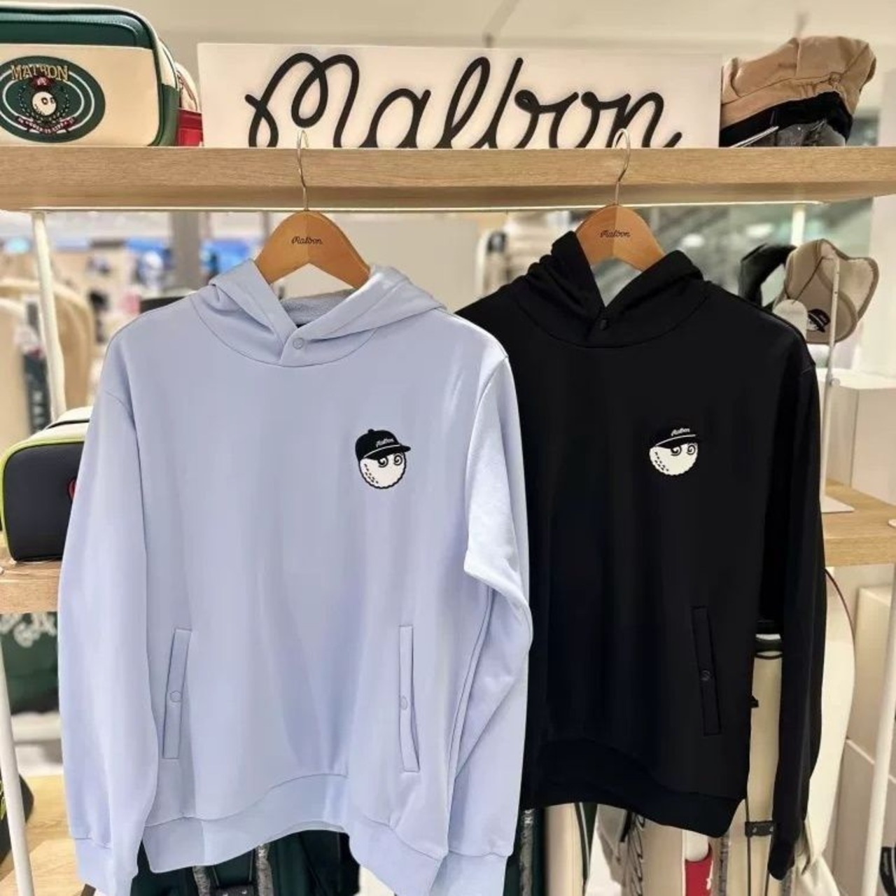 malbon golf マルボンゴルフ パーカー レギュラーフィット スウェット 新作 ゴルフウェア 男女兼用 スポーツ カジュアル 防寒 暖かい ブルー ブラック ホワイト