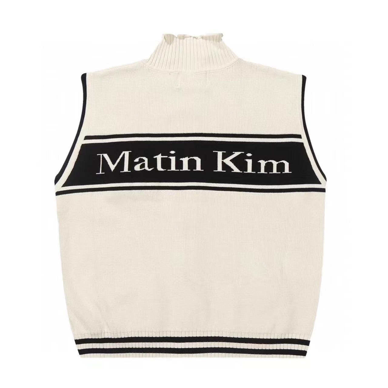 Matin Kim マーティンキム ニットベスト ストライプ 韓国 カップル ニットベスト レディース メンズ 防寒 暖かい ホワイト ブラック 2色