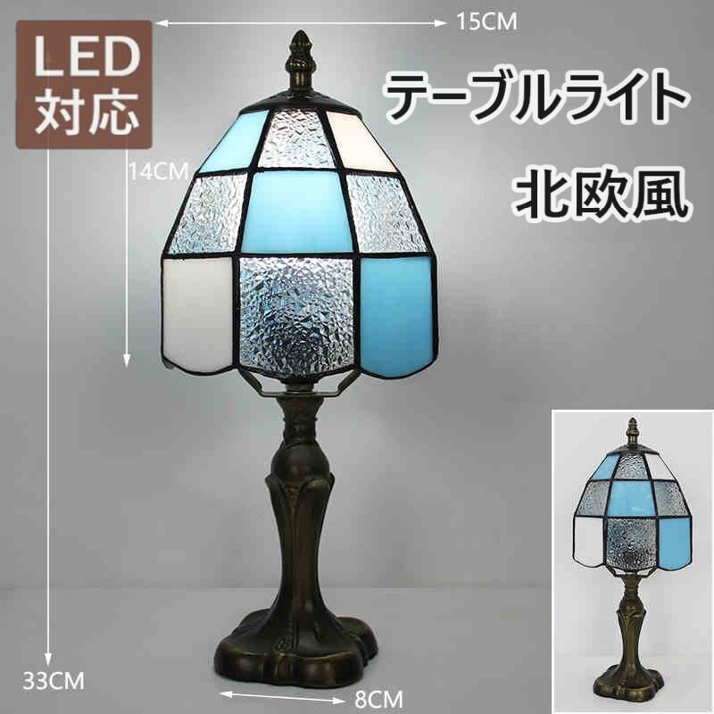 テーブルライト おしゃれ 卓上ライト ブルーチェック モロッコ風 ガラス ステンドグラスランプ デスクライト 北欧 おしゃれ アンティーク 間接照明 インテリア ホテル LED