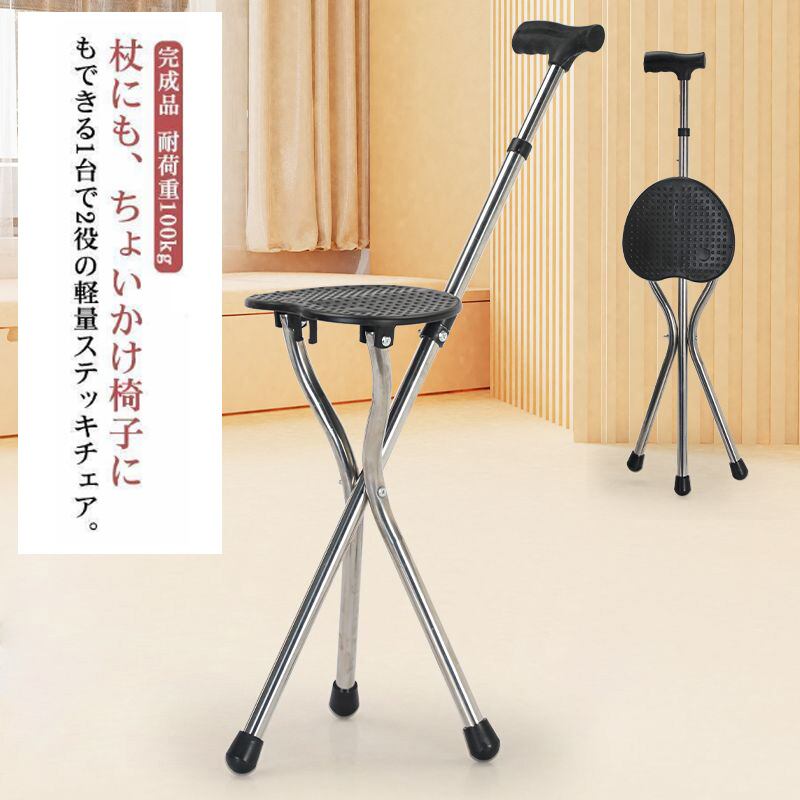 ステッキチェア 軽量 杖 ステッキ 折りたたみ イス 一本杖 三脚 自立式 ステッキ椅子 座れるステッキ 歩行補助杖 祖父母 敬老の日 プレゼント
