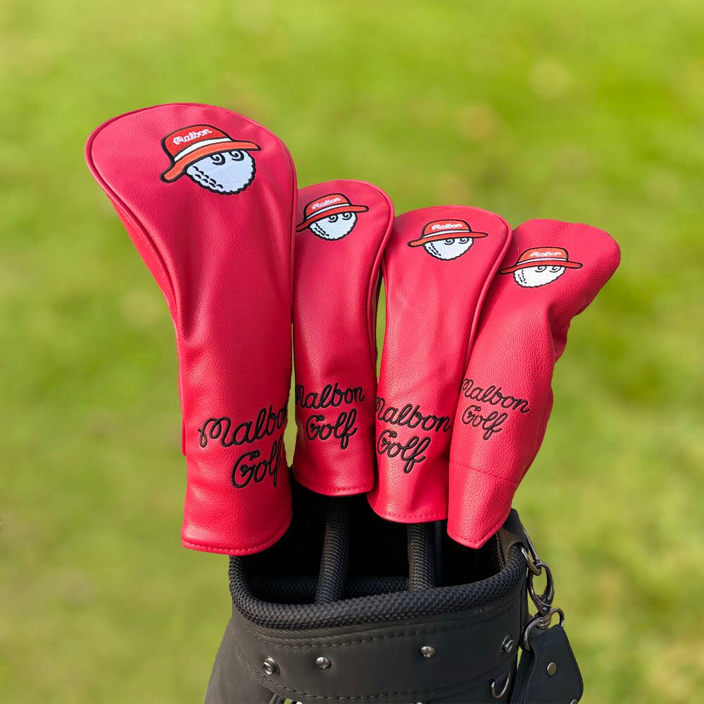 新品 malbon golf マルボンゴルフ ヘッドカバー 4点セット ゴルフ クラブ ヘッドカバー レッド