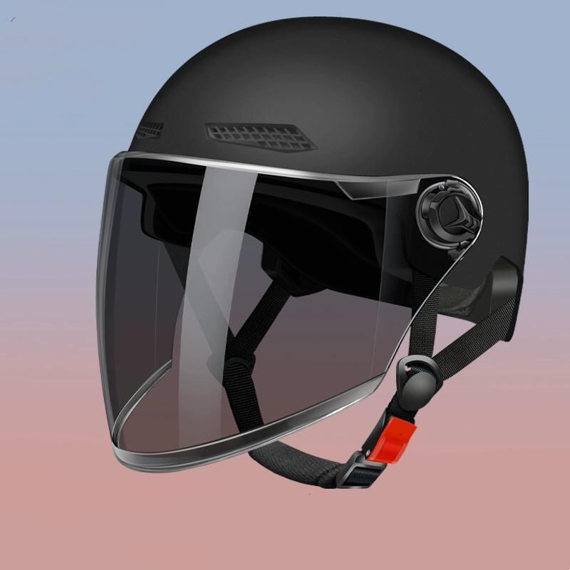 この自転車ヘルメットは厚くて柔らかいクッションインナーと後頭部のサポート部分が適度にしなる設計により後頭部までしっかり守れます。ヘルメットの前にシールドも装備しており、全方位から守ってくれます。
