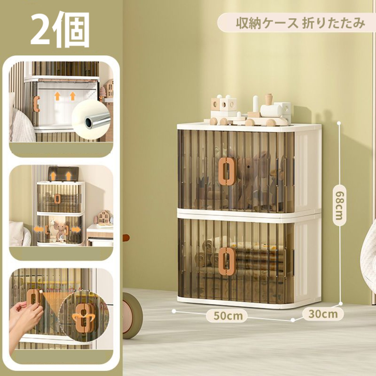 【2つの開き方】折りたたみ式収納箱は2つの開き方が可能です。上部の蓋を開ける方法と、前面扉から開ける方法があります。前面扉にはロックバックルが内蔵されており、ブラウンの取っ手を回転させて扉のロックとロックをコントロールし、扉が勝手に開いてしまうことがないようにします。前面扉は、引き出しや上蓋を取り外すことなく、中の物を簡単に取り出せます。埃を寄せ付けません。