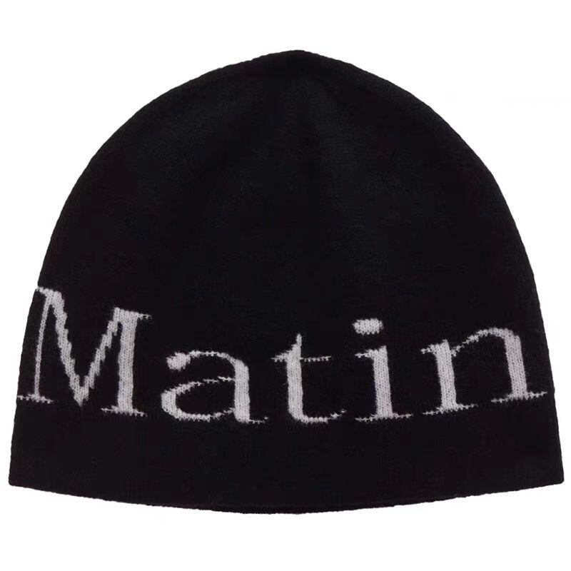 Matin Kim マーティンキム 帽子 ニット LOGO ロゴ ビーニー ストライプ 防寒 冬 韓国ファッション レディース ブラック ホワイト グレー