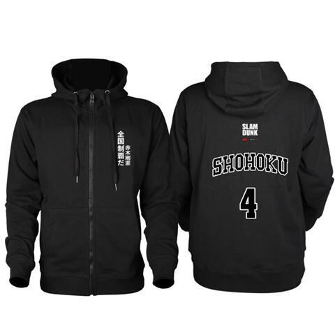 スラムダンク 湘北高校 赤木剛憲 ジップアップパーカー SHOHOKU コスプレ衣装 背番号 4番 コットン 仮装 Cosplay 大きいサイズ 男女兼用 春秋冬 ブラック ホワイト グレー