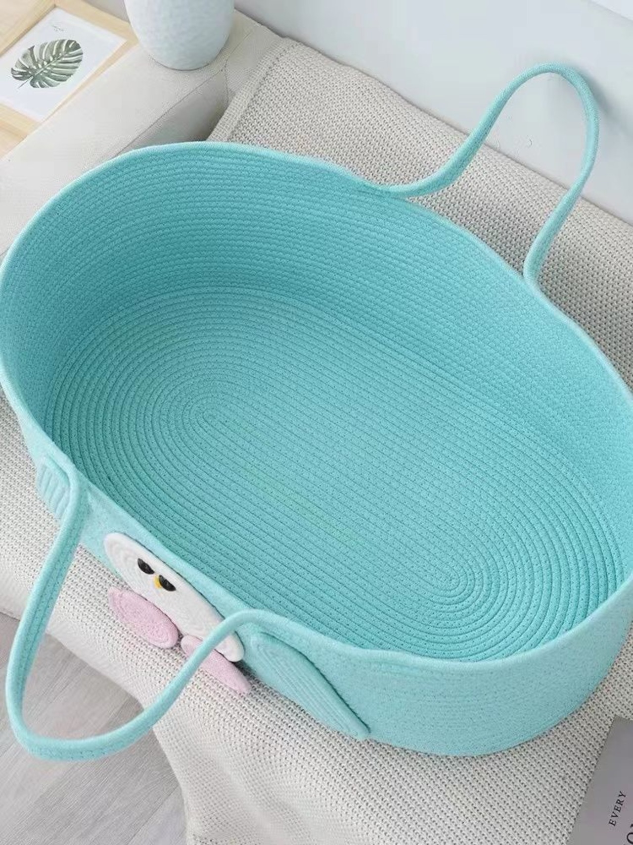 かご 寝返り防止 ベビーバスケット ベビー 赤ちゃん ベビーキャリー 折りたたみ ロープ編み 籠 添い寝 お昼寝 ベビーベッド ブルー